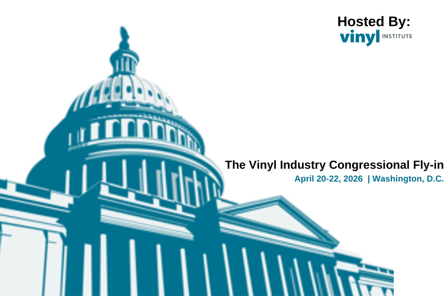 The 2026 Vinyl Industry Fly-In is taking place from April 20-22, 2026, in Washington, DC. This is your opportunity to meet with legislators and their staff to discuss important vinyl industry issues. This year, our meetings with legislators and their staff will be held on Capitol Hill. We’re looking forward to seeing everyone in person. Please see below for more information, and a preliminary agenda for the event.